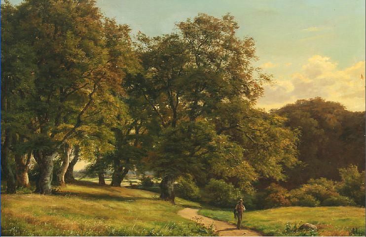 | Oak forest with a walking person. | |