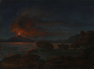 Une éruption du Vésuve de nuit