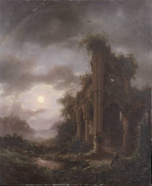 The ruins of the abbey of Villers-la-Ville by moonlight