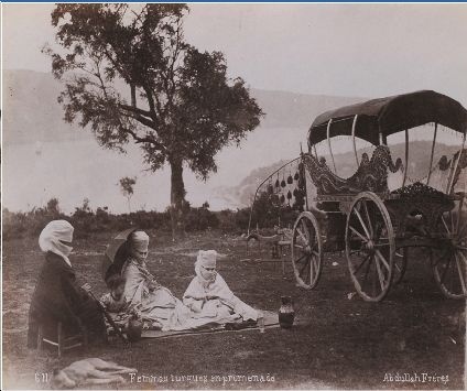 Turquie, famille turque en promenade, vers 1875