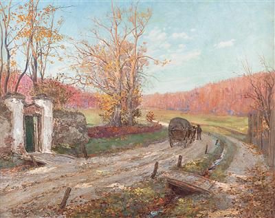 Pferdefuhrwerk in herbstlicher Landschaft
