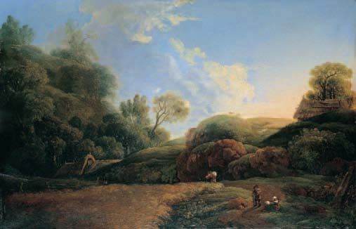 HÜGELIGE LANDSCHAFT MIT WANDERERN