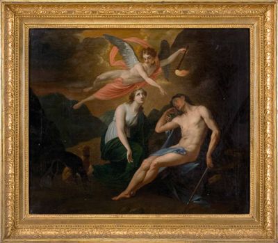 | Selene mit dem schlafenden Endymion und einem Genius in Berglandschaft | |