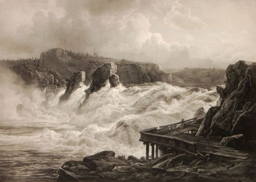| Der Rheinfall bei Schaffhausen gesehen vom linken Ufer unter dem Schlosse Laufen | |