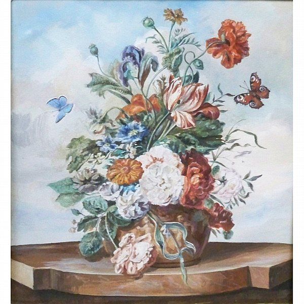 | Elaborate Floral Still Life on a Ledge with Butterflies: Two | |