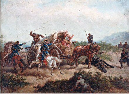 | L'attaque des prussiers et des hussards hongrois autour de la charette de foin | |
