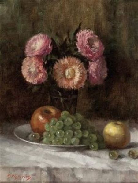 Stillleben mit Blumen, Äpfel und Weintrauben