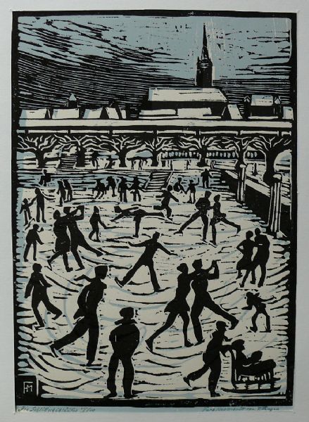''Die Schlittschuhläufer'' an der Kaimauer von Radolfzell