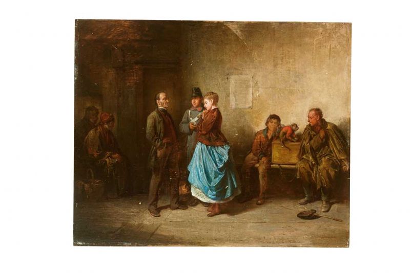 | In der Gendarmerie wird eine hübsche junge Frau einem älteren Herren vorgeführt | |