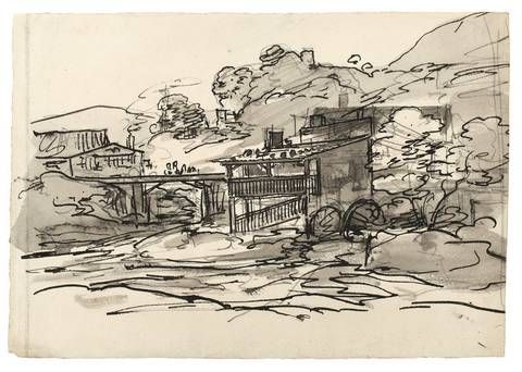 | Pen and India ink, washed, over pencil on wove paper. | |