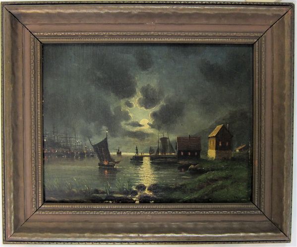 Nocturnal harbor scene.