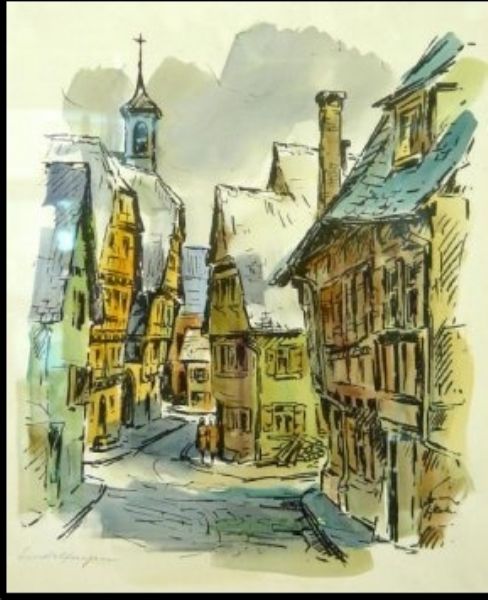 Lithograph watercolor