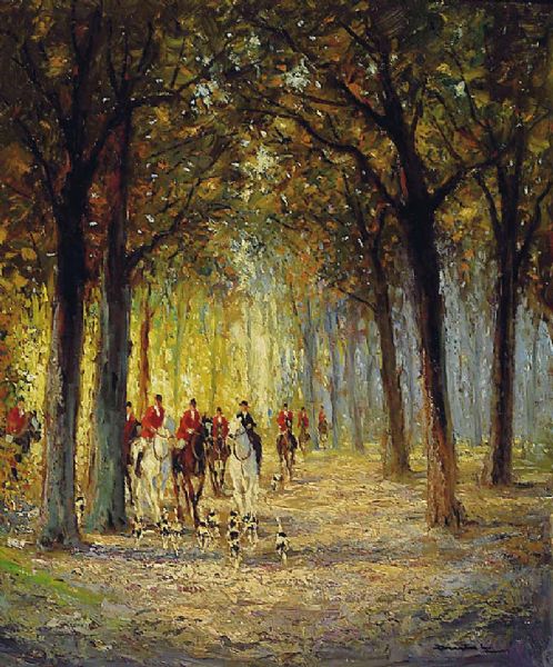 Parforcejagd in herbstlicher Allee
