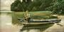 Angelnder Junge im Boot am Chiemseeufer