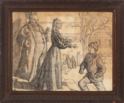 | A portrait of the artist's wife Anna Syberg and a fairytale illustration | |