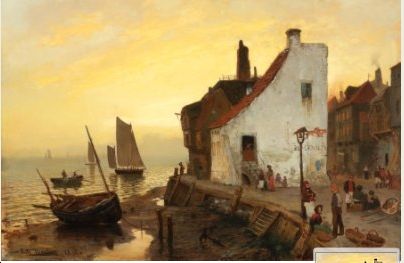 | Kystby med folkekliv, engelske kanal ved ebbe, 1875 | |