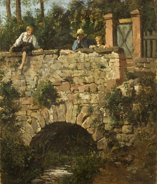 Italienische Lausbuben auf einer Steinbrücke