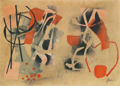 | Mixed Media on thin cardboard, laid down on canvas | |