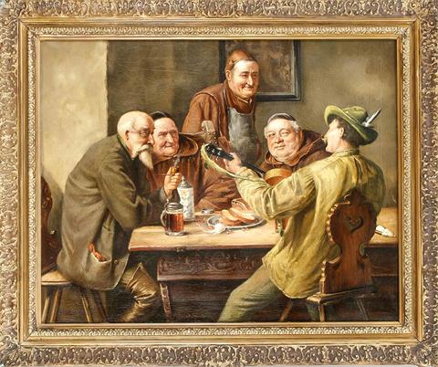 Mönche und Jäger amüsieren sich bei der Brotzeit