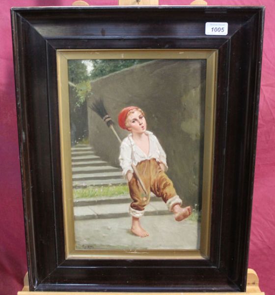 study of a barefoot Naples urchin whistling, with a broom under his arm