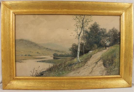 HUNTER ON A PATH BY A RIVER