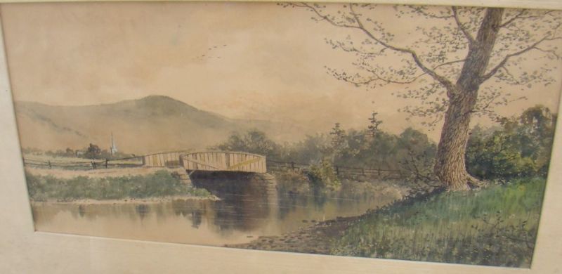New England landscape with bridge and faraway village