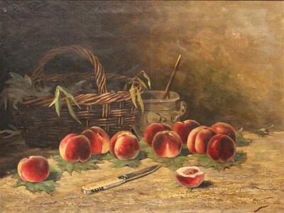 | STILL LIFE WITH BASKET AND PEACHES | |