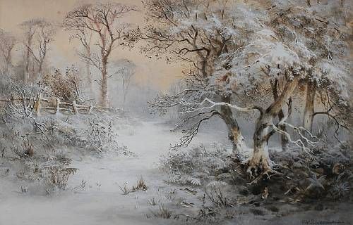 Snowy landscape with rabbits