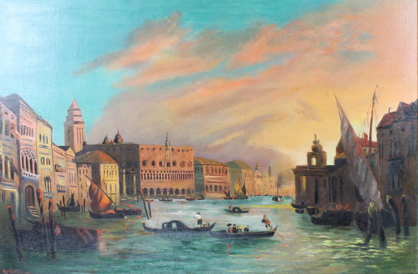 Venetian canal scene at sunset