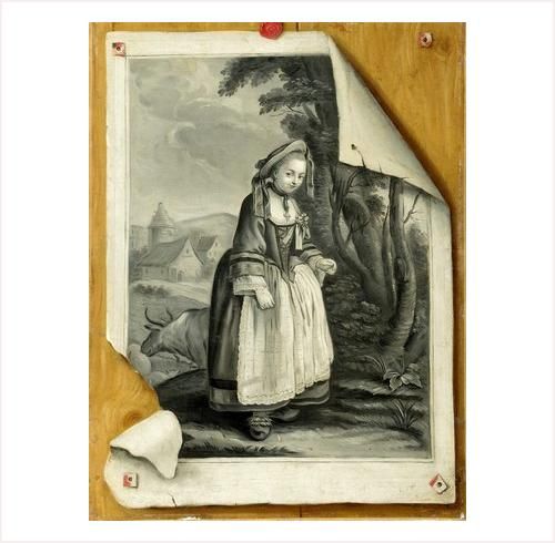 | Trompe l'oeil à la gravure de Madame Favart, d'après Carl Van Loo; | |