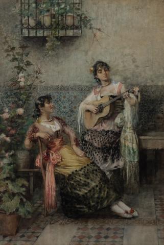 | Two Ladies Playing the Guitar and Singing in a Courtyard | |