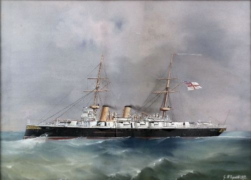 Ship portrait - Battle ship in full steam off coast