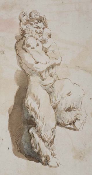 | Pen and brown ink and brown and gray wash on cream laid paper | |