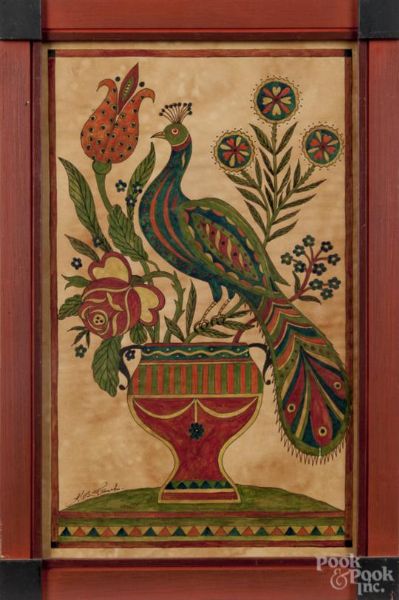 A peacock on a floral urn