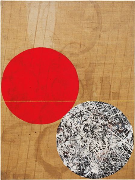 Acrylic and gold leaf on jute
