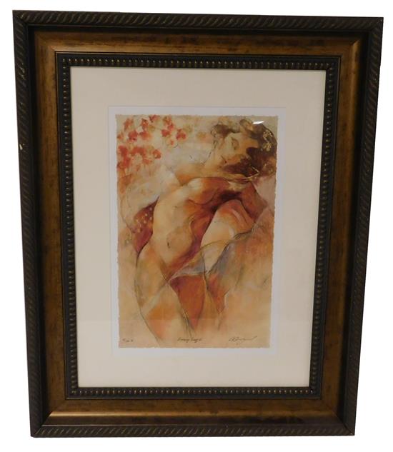| Lithograph on woven paper depicting nude woman with closed eyes and outstretched arms | |