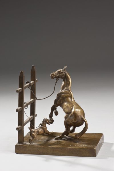 Cheval à la barrière effrayé par un chien