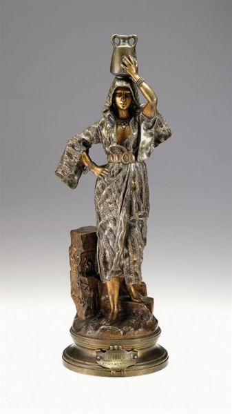 | Bronze silver, gold, and brown patinas, modeled as a standing young woman holding a jug on her head | |