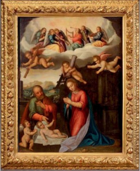 | Sainte Famille avec Saint Jean-Baptiste et des anges tenant les instruments de la Passion | |