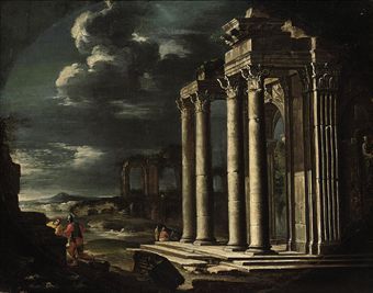 | An architectural capriccio with soldiers conversing | |