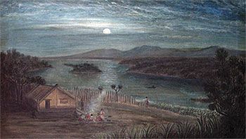 Maori Pah Under Moonlight