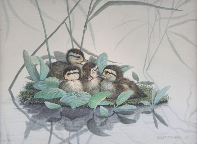 Four wood ducklings