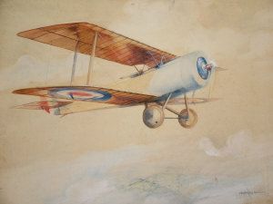 Royal Air Force WWI, bi-plane preparing for a dog- fight