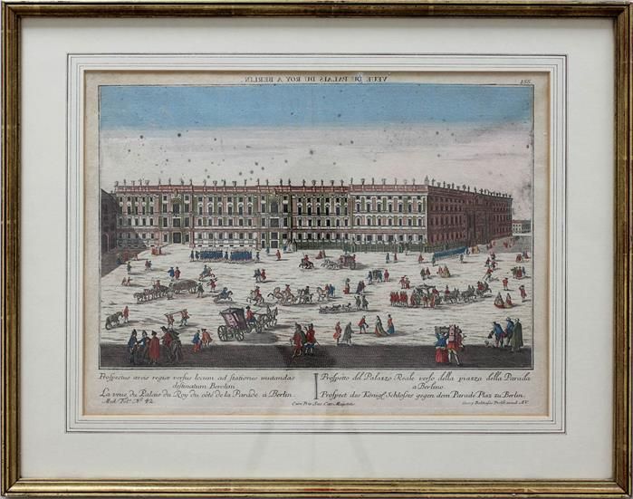 | Guckkastenblatt "Prospect des Königl: Schlosses gegen dem Parade Plaz zu Berlin", so in der Platte betitelt | |
