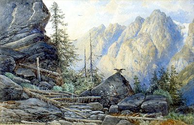 Sommerliche Hochgebirgslandschaft mit Raubvögeln