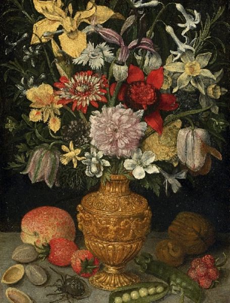 BLUMENSTRAUSS IN MANIERISTISCHER VASE BLUMENSSTRAUSS IN GLASVASE