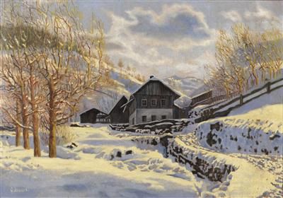 Alter Hof in verschneiter Berglandschaft