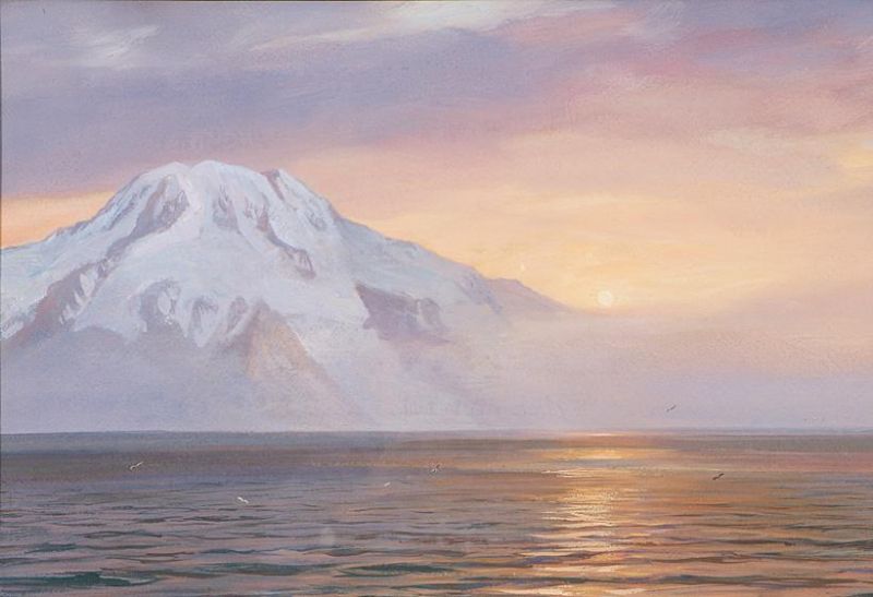 Mitternachtssonne. Insel Mayen, Grönlandsee