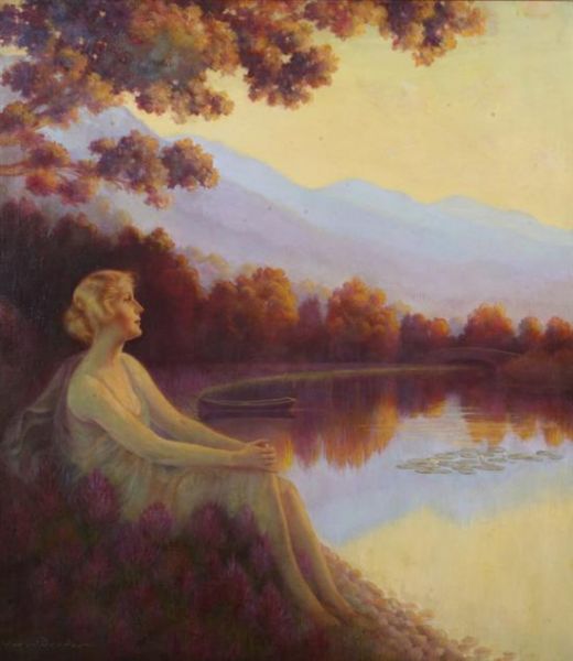 LADY BY THE LAKE AT SUNSET