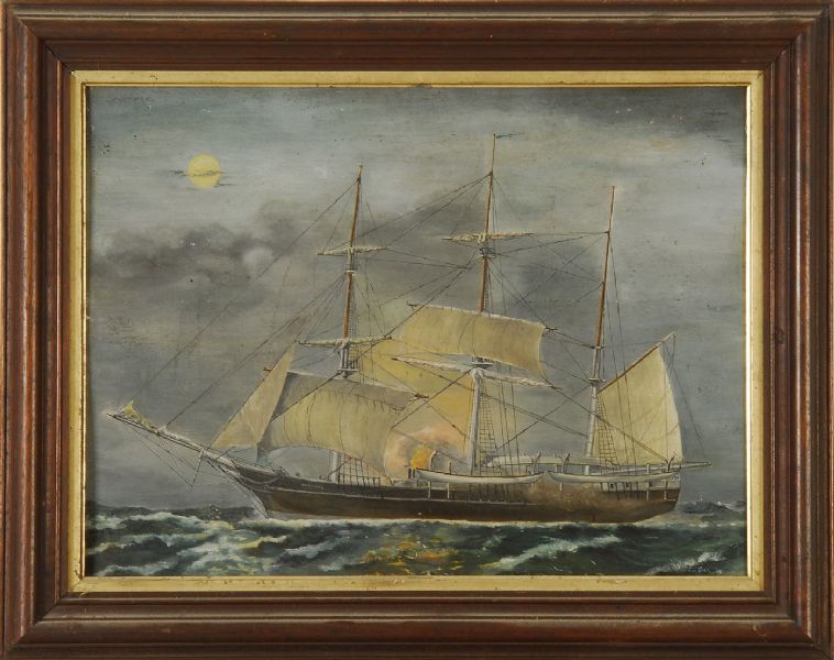 Portrait of the whaleship Narwhal trying out under moonlightanm